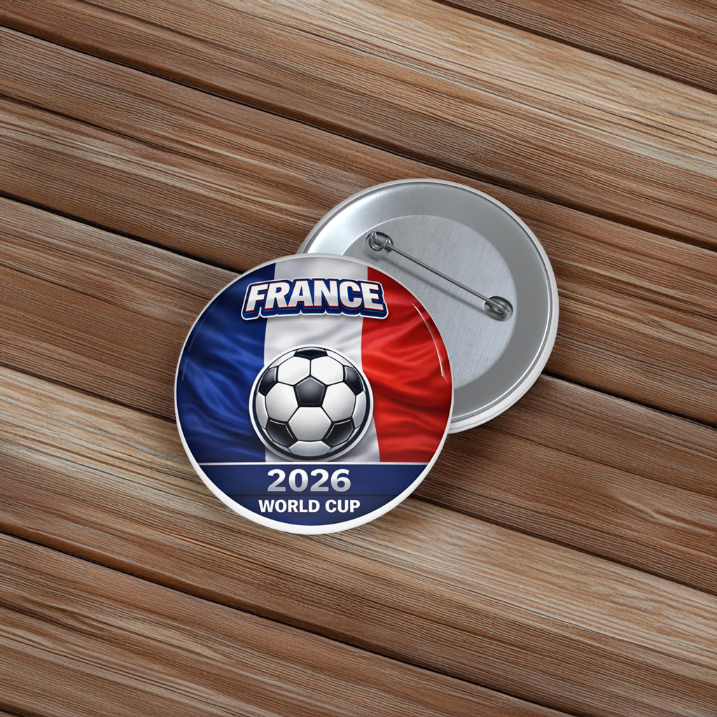 • France World Cup 2026–inspired pin button design