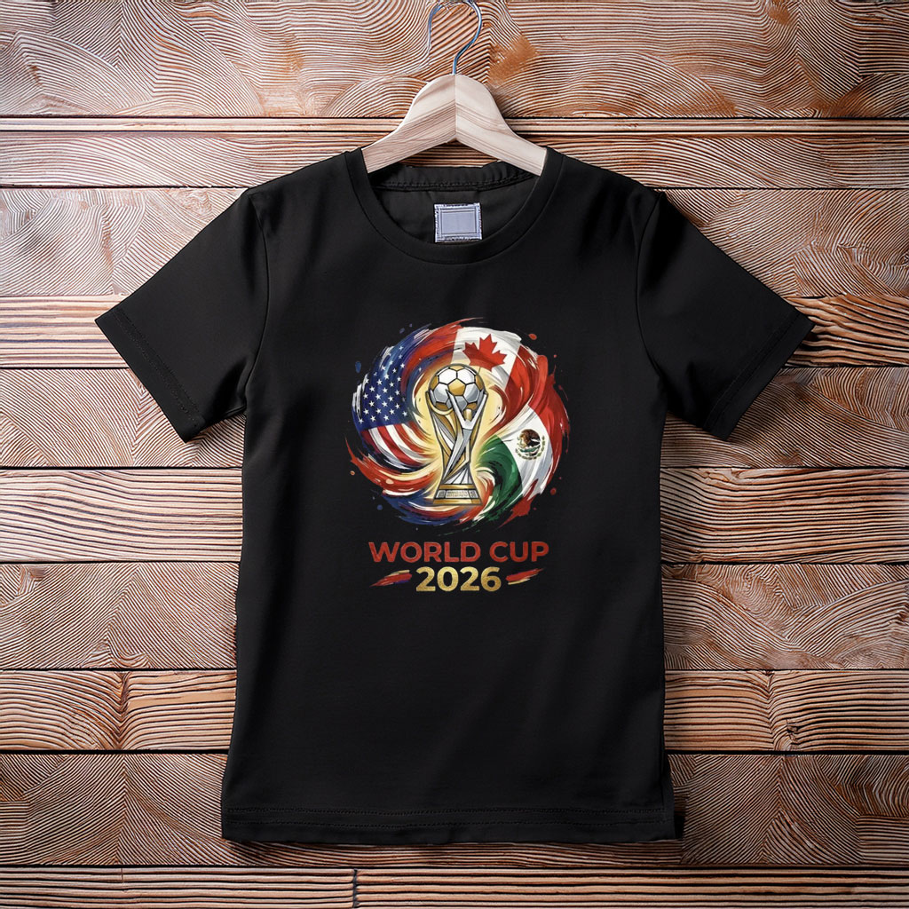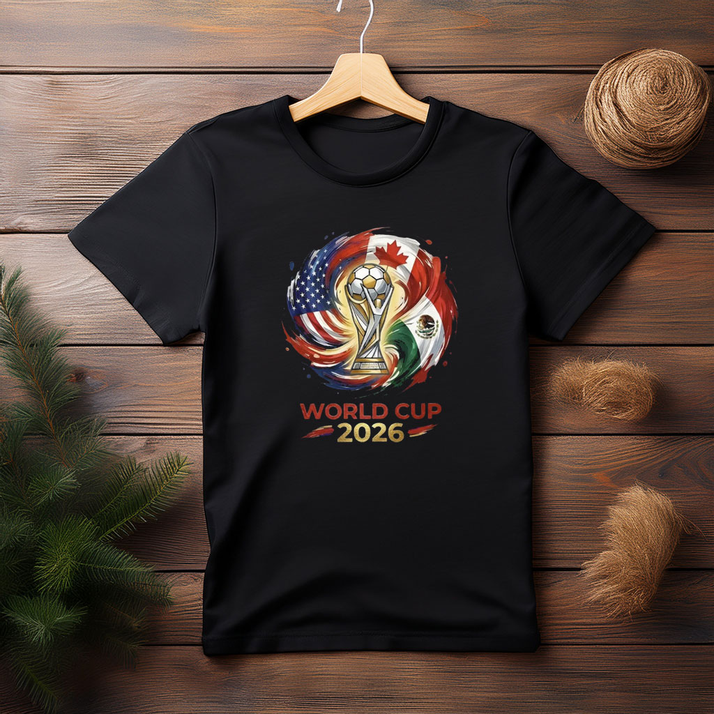 Designed for fans of all ages, this shirt features a bold, high-quality print showcasing the flags of the host countries, making it eye-catching and full of international soccer spirit. Its soft, breathable fabric ensures all-day comfort, whether you’re cheering at the stadium, attending watch parties, or enjoying casual outings.