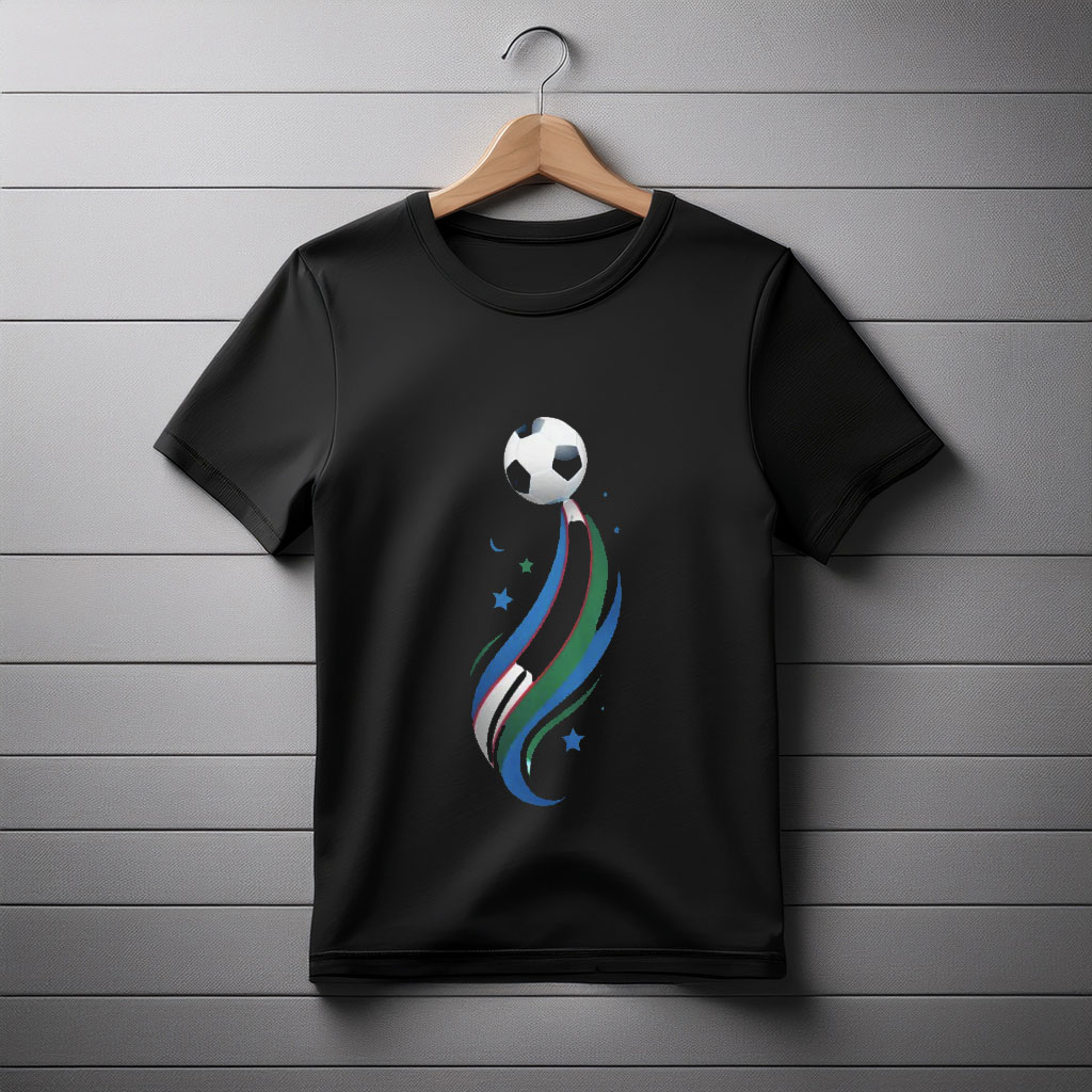 National Pride Design: Showcases Uzbekistan’s flag with a soccer theme