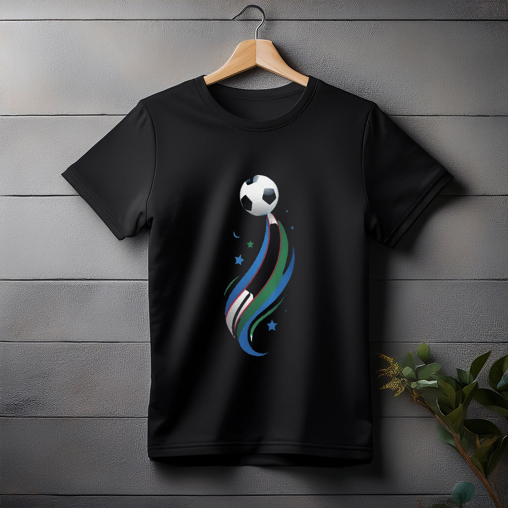 Crafted from high-quality, soft, breathable fabric, this shirt ensures all-day comfort whether you’re cheering in the stadium, playing a pickup game, or wearing it casually. The vibrant design features a soccer ball decorated with the iconic Uzbekistan flag, making it a standout piece for any football fan.
